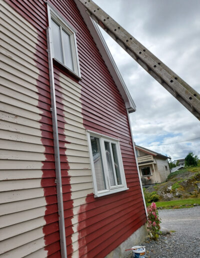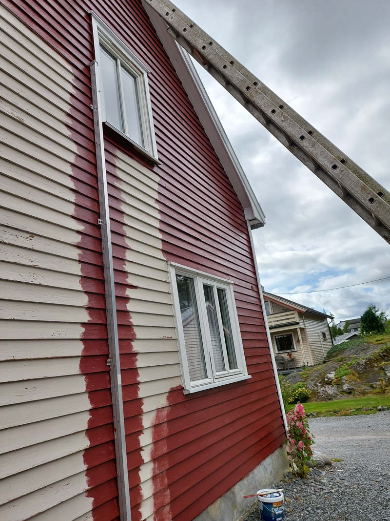 Vi starter med grundig forarbeid, som kan inkludere vask, skraping, sliping og grunning ,for å sikre et godt resultat. Deretter benytter vi maling eller beis av høy kvalitet som er tilpasset underlaget og klimaet, slik at bygningen ikke bare ser flott ut, men også er beskyttet i mange år fremover.